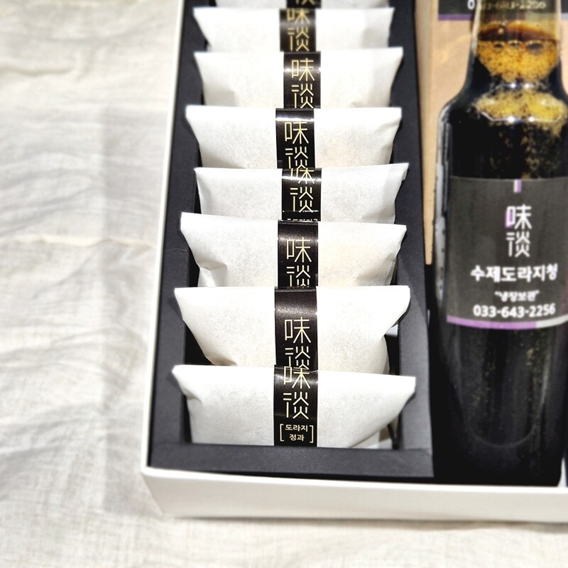 강릉미담 콩고물도라지 정과와 도라지청 바삭 고소한 오곡한과 도라지청 담았습니다. 부모님