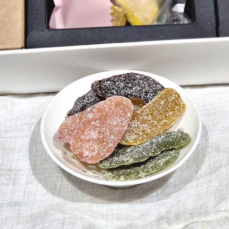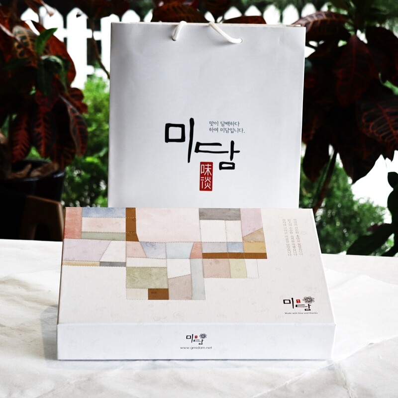 강릉미담 콩고물도라지 정과와 생강청 바삭 고소한 오곡한과 도라지청 그리고 고급스러운 다식을 담았습니다. 부모님