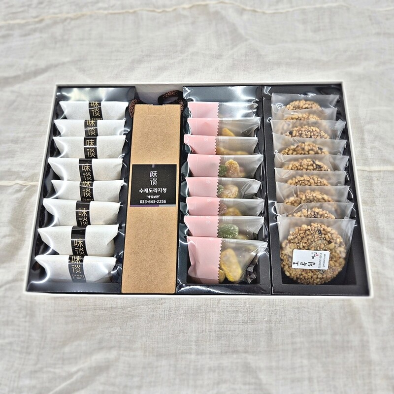 강릉미담 (종합선물 25-01호)(오도청오)바삭고소 오곡한과 곡물한과 콩고물도라지정과 도라지청 오곡칩 맛과 멋과 품위있는 추석 설 명절선물 부모님 시댁